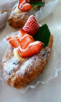 JUGEMテーマ:*食べ物の写真* ご来店くださったお客さま、 中央病院の売店や、外販でお求めくださったお客さま、 ありがとうございました。 スタッフIの庭で、ミントが新芽を伸ばし始めたそうです!!! さっそく、葉っぱを摘んできてくれたので、 いちごデニッシュに飾りました。 いいですねぇ〜!!!!! ミントが加わって、いっそういちご・越後姫が輝きを増しました☆ 皆さまのご来店を、スタッフ一同お待ちしております。