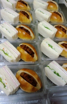 JUGEMテーマ:*食べ物の写真* ご来店くださったお客さま、 中央病院の売店や、外販でお求めくださったお客さま、 ありがとうございました。 今日は、ケース入りのサンドウィッチのご注文がたくさんあり、 朝5時から仕事でした。 何とか、スムーズに作れて、ホッとしました。 いつものコロッケサンドは、ドッグパンに挟んでいるのですが、 トーストした食パンと、バターロールの2種類を作ってみました。 パンが違うと、コロッケのお味まで違う感じがしますね!!!