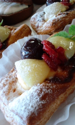 JUGEMテーマ:*食べ物の写真* 足元の悪い中、ご来店くださったお客さま、 中央病院の売店や、外販でお求めくださったお客さま、 ありがとうございました。 フルーツデニッシュをクリスマスバージョンにしてみました! 洋梨、ダークチェリー、クランベリーをトッピングしました。 ミントを添えて。 おやつにいかがでしょうか? 皆さまのご来店を、スタッフ一同お待ちしております。 *お知らせ* FM−Jの『サンタとハッピークリスマス』が12月13日(日)13:00〜15:00まで イオン・アコーレセントラルコー...