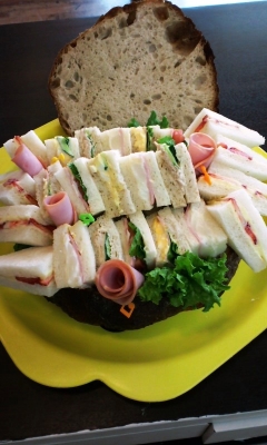 JUGEMテーマ:*食べ物の写真* ご来店くださったお客さま、 中央病院の売店や、外販でお求めくださったお客さま、 ありがとうございました。 いよいよ、雪が降りますかねぇ~~~~ シュープリーズのご注文承ります! 直径24,5センチの大きなカンパーニュの中に、 サンドウィッチを2段に詰め合わせてあります。 『シュープリーズ』とは、フランス語で『サプライズ』の意味! ビックリすること間違いナシ!!!! 1個 2500円 です。 器がパンですので、サンドウィッチを召し上がった後に、 シチューやスープを...