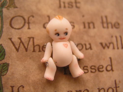 キューピーちゃん、大好き♡ 古今東西、様々なタイプの子がいて ネットで画像を探し始めると時間を忘れて見入ってしまいます。 ミニチュアドールでもキューピーちゃんは定番ですね。 もちろん私も市販のキューピーちゃんモールド持ってます。 この子は手足の動くタイプ。 今日はこのキューピーちゃんを紹介します。 サイズは2.3cmくらい。 市販の手足可動タイプのキューピーモールドは、 この子が一番小さそう。 キューピー...