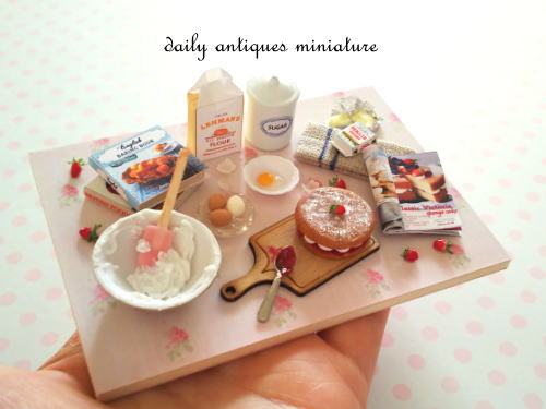 こんにちは(*^▽^)/! ギリギリ作っていたものが出来上がりました♪ ヴィクトリアケーキのメイキングシーン! 想像していた物よりもかわいく出来て、お気に入り♡♡♡(笑)。 この雑誌を作った時にこういうふうに並べたーーーい!と思って作った作品です。 サイズはキッチンのテーブルにちょうど良いサイズ。なので結構大きいです。 脚を付ければテーブルになっちゃう! (こちらをお買い上げで、テーブルにしたい場合はご相談下さいませ♪) 海外の作家さんの作品で、クッキング途中というシーンはよく見...