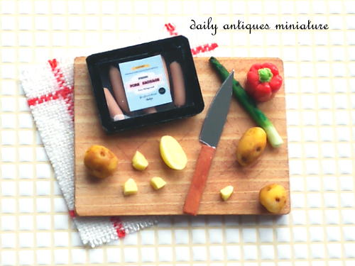 こんにちは。 暑い日が続いていますね〜。 今日は曇りだったので少しマシかな?とエアコンのない部屋で撮影していたら、終わった頃 には汗びっしょり。 皆さま、夏バテなどにはお気を付け下さいませ(という私もバテてますが・・・) さて 先週のまな板のアレンジで、お料理中のシーンを作ってみました。 こちらは全部セットになって接着されています。 夕飯は何のメニューかな??? ソーセージ、じゃがいも、アスパラ、赤ピーマンのセット。下のクロスも付いています。 もう1つの別バージョン。 卵にチーズ、トマ...