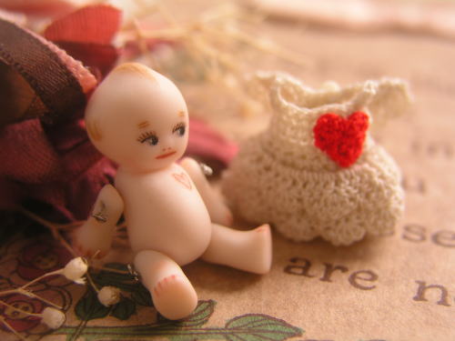 ちょっとプライベート事でバタバタしてたら もう間もなく6月おわり!? 残り数日で今月の制作目標、何%達成できるかな。 焦るぅ 今後の出品や、新作のお人形(数点)に取り組んでいる最中なので ショップが手薄になってますが、気長に見守って下さい そんな中、やっと完成までたどり着けた手足可動キューピーminiちゃん。 キューピーらしく天使のワンピを編んでみました もちろん帽子もワンピも脱衣OKです 着せました ...