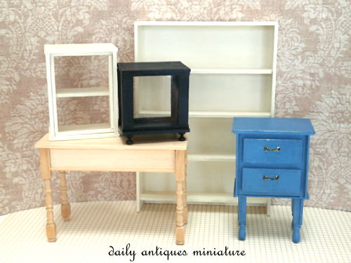 こんにちは。 6月に入りましたね。 お知らせしました通り、今月はミニチュアショウ出店を予定しており、ちょっとそわそわと 落ち着かなくなってきました(私の気持ち的に)。 今週はもうそろそろ準備を始めなくてはならないのですが、その前に少し作りたい〜と 先週は家具を作っていました。 できたアイテム達。 一番大きいのはこちらの棚。 実は、これと全く同じ形のものを実際の家具で持っています。 意図したわけではなく、出来上がって同じだ〜!と自分でビックリ。 昔アンティークショップの什器を作った時に、私自...