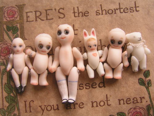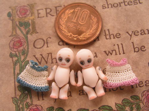 「今月から造り始めたチーム」達は、順調に制作が進んでいます。 グラスアイ組も、9割の子がグラスアイを入れる作業が終わりました。 試験的に制作中のグーグリーアイの手足可動キューピーminiの双子ちゃん達は グラスアイをいれてみたら、作者がおなじなせいもあり お顔が本家のグーグリーさんにそっくり まるでグーグリーさんの子供バージョンのよう お洋服はブルーとピンクで。 レース糸はいつもの、うちの定番になってい...