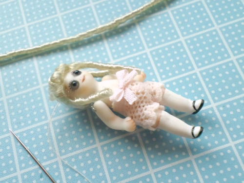 今日はカツラ作りの日。 くりくりお目目のグーグリーちゃんに 縦ロールをつけているところ。 左下の針は、つむじを縫うのに使っています。 美人のクリスタルローズは、出来あがったカツラを試着中。 サイズぴったりだったので、 ドレスを着せて全体のバランスをみながらヘアカットします。 年明けから同時進行で造ってた子達のうち そろそろ何体か完成しそう。 ゴールが見えてくると、テンション上がります ...