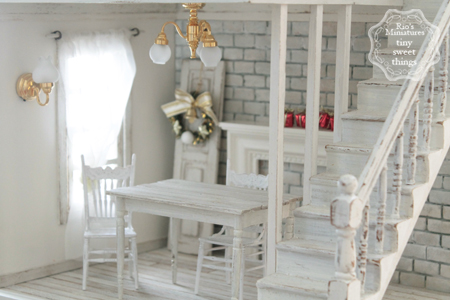 JUGEMテーマ:ミニチュア こんにちは、Rioです。 完成したドールハウスに家具を入れてみました 1階の様子。 2階の様子。 白くて見づらいですが、クリスマスオーナメントを壁に飾ってみました。 これはクリスマスが終わったらとるので、貼って剥がせる両面テープでくっつけています。 でも殺風景・・・というか、物がなさ過ぎて完成したのに建設中みたいな雰囲気 もうちょっと可愛くしたいところです。 ...