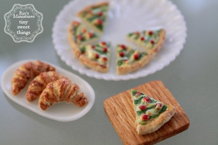JUGEMテーマ:ミニチュア こんにちは、RIoです。 今日は珍しく朝から更新です。 今日も朝5時から真面目に仕事をしていたんですが、いまさっき、今日が祭日だと気づきました。 気づいた途端、激減するやる気・・・ そんなわけでブログを書いてます 先日、久しぶりにミニチュアフードを作りました。 クリスマスツリー風バジルソースピザとクロワッサン。 そろそろ何かクリスマスっぽいものを・...