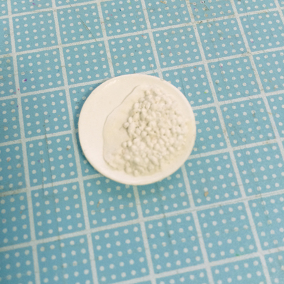JUGEMテーマ:ミニチュア こんにちは、Rioです。 夏はカレーが食べたくなります。 というわけで、今日は夏野菜のカレーを作ってみました。 まずはお皿にご飯を盛りつけて・・・ 一粒一粒全部は大変なので、粘土で底上げをして表面にボンドでご飯粒をくっつけました。 これ、ご飯粒が大きいですね 乾いたらトップコートを塗ってつやを出します。 黄色に着色した粘土で、茄子、カボチャ、パ...