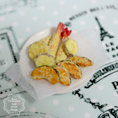 JUGEMテーマ:ミニチュア こんにちは、Rioです。 好きな天ぷらは、カボチャ・サツマイモ・エビです。 今日は初めての天ぷらにチャレンジしてみました。 軽量粘土と絵の具とボンドを水で溶いて衣をつけました。 む・・・難しい・・・ 美味しい天ぷらの見るからにさくさくしたあの感じ、出せません なんか、堅そう(特にエビが)・・・ また改めてチャレンジしたいと思います! ...