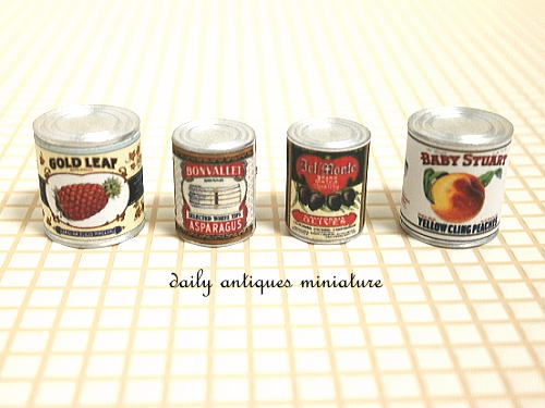 こんにちは。 先週の更新もたくさんのお客様にお買い上げいただきまして、どうもありがとう ございました 今週は発送作業でほぼ終わってしまった感じですが、昨日はこちらを作ってました。 ミニチュアの缶詰。 高さはあまり変わりませんが、太いのと少し細いのとサイズ2種類あります。 はい! 指の上にのるサイズ♪ (上の画像左から)パイナップルの缶詰〜。 ↓こちらはおしゃれなアスパラ缶 昔はホワイトアスパラと言えば缶詰でしか見たことなかったですよね。 ↓オリーブの缶。 そして桃缶です。 ...
