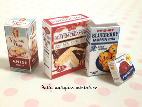 こんにちは。 普段あまりスポーツに興味はないワタクシですが、、、ここ数日すっかりオリンピックに 夢中になっております。 さて、お休み前に少しだけですが出来ているアイテムをお披露目。 レトロな雰囲気のパッケージものを。 先週お見せした缶詰と一緒に並べたくて♡ いくつか箱モノを作ってみましたー。 一番小さいのはゼリーのパッケージ。いちご味。 スプーンも一緒に写してみましたよ。ティースプーンです。小さいのがお分かりいただけ たかな? 小さい頃に食べたあのチープな味のインスタントゼリー、...