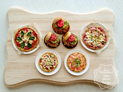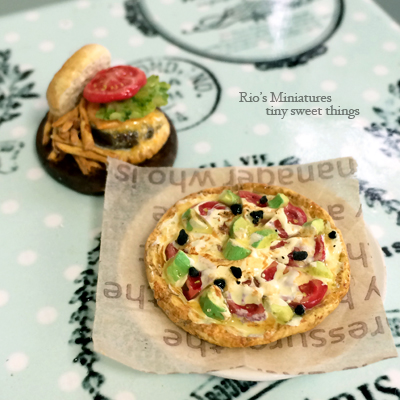 JUGEMテーマ:ミニチュア こんにちは。Rioです。 夏休みなので近所の子供たちの声がにぎやかです。 夏だな〜。 どんだけピザが好きなんだ…と、若干自分に引き気味ですが、今日もピザです。 好きなものは仕方ないのです。 これは4月につくったアボカドとトマトのピザ。 と、追加で作ったチーズバーガー。 チーズバーガーは最初、明るい色の木のお皿にセットしてたのですが、バンズとポテトとほぼ同色で「これ皿ごと食べるの…?」って感じになって...