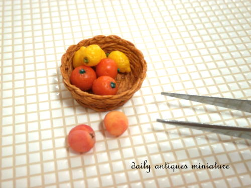だいぶ間が開いてしまい、すみません〜。 先週末は、イベントに出店していました。(もう1個のブログに書いてます) その準備などをしていたら、あらら・・・あっという間に1週間。 我が家に子供の猫ちゃんを迎えたこともあり、毎日てんやわんやでございます。 途中だった果物のミニチュアをやっと仕上げました。 意外にも一番難しかったのはオレンジ。 多少”みかん感”が拭えないか・・・。 今まで、りんご、洋梨、バナナ、苺、レモン、今回新たに桃と作りましたが (他にも野菜はいろいろ、、、)オレンジ...