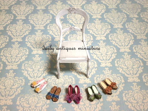 今週はちょっと趣を変えて、、、靴を作ってみました! 前々から、靴は作りたい〜と思っていたアイテム! そう。↑こんなセッティングに憧れていたんです(笑)。 でも正直なかなか作るのが大変そうで・・・重い腰が上がらなかった私。 う〜ん、でも女の子のお部屋に、靴ってあったらやっぱりかわいいんじゃないかぁ・・・ (女性は皆、靴が好きなハズ)ということで。 試行錯誤を重ねて・・・ こんなモードな感じのサンダル風のや、、、 (結局これが一番よく出来たかな?) フラットシューズ。 グリーンのはちょ...