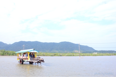 八重山諸島を訪れたら、絶対乗ってみたいのがこの水牛車。 三線の音色を聞きながらのーんびりのーんびり由布島へ移動。 干支が丑なものですから、なんとなくキャラとしても好きな牛。 シャイな子がいたり、スピードがまちまちだったり、個性が面白い。