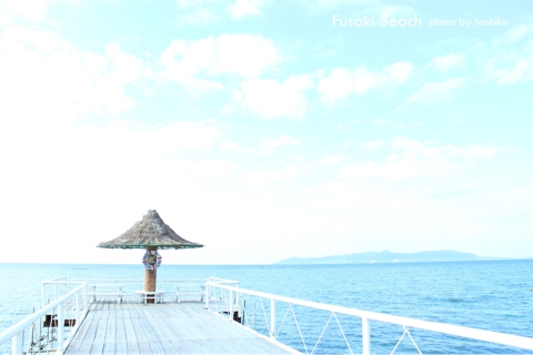 今回泊まったホテルをご紹介します。 フサキリゾートヴィレッジです。 島の西南側のビーチに面していて、 ホテルのプライベートビーチからのサンセットが有名だそうです。 (是非[公式サイト]でお写真をご覧になってください) 今回お天気に期待してなかったから、1日も日の入り時刻に宿にいる設定にしていなくて、 もったいないことをした。。。また行かなきゃ。 写真はそのビーチの桟橋。 大晦日は午前中まで雨だったそうだけど、午後私たちが着く頃には、 少しずつ雲が減っていきました。