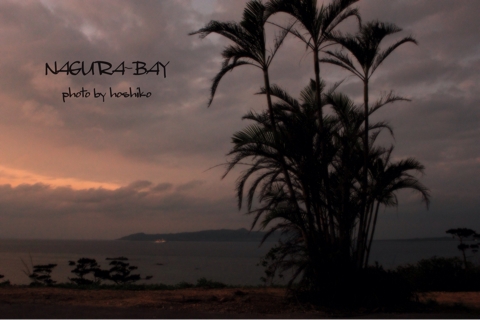 今日の写真は夕暮れの名蔵湾を見下ろしたところ。 小さいしソフトフォーカスのフィルタをかけてしまったのでわかりにくいですが、 水面上に光って見えるのは海上保安庁の大きな船(今日はちょっと辛い話題ですね;;)。 その向こうに見えるのは小浜島です。