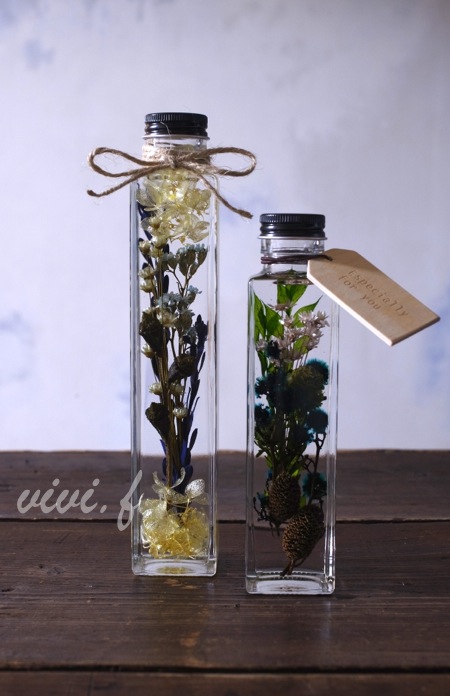 ハーバリウムオイルアレンジメントの魅力は、花材を輝かせる オイルの「透明度と光の反射」です 写真は「フリースタイルコース」と「季節のアレンジメントコース」の 方の作品です 北九州 アレンジメント教室 北九州市 プリザーブドフラワー教室 北九州市八幡西区 フラワーアレンジメントレッスン 北九州市八幡西区 プリザーブドフラワーレッスン