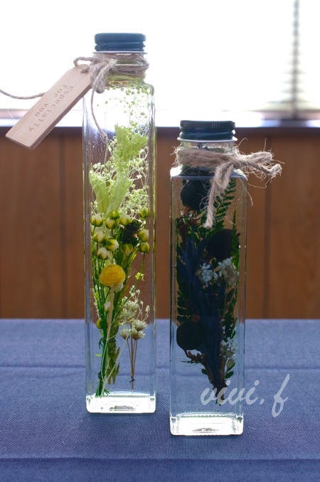 やっとやっと、秋の気配が近づいて来ましたね... 今年の夏の教室では、水中花の様で涼しげな「ハーバリウムオイル アレンジメント」を作製しました。 本日よりどどーっと、皆さんの作品をアップして行きたいと思います こちらは一番に作製された、フリースタイルコースの方の作品です 北九州 アレンジメント教室 北九州市 プリザーブドフラワー教室 北九州市八幡西区 フラワーアレンジメントレッスン 北九州市八幡西区 プリザーブドフラワーレッスン