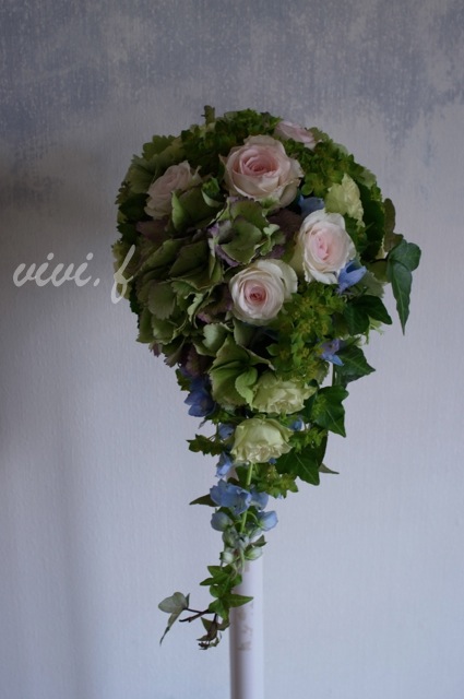 ティアドロップブーケ再び! 秋色アジサイとグリーンがたくさん入った、 爽やかブーケ。 アレンジメント教室「フリースタイルコース」 の方の作品ですシュッとした、シャープな ラインが出ています 北九州 アレンジメント教室 北九州 プリザーブドフラワー教室 北九州市八幡西区 フラワーアレンジメントレッスン 北九州市八幡西区 プリザーブドフラワーレッスン