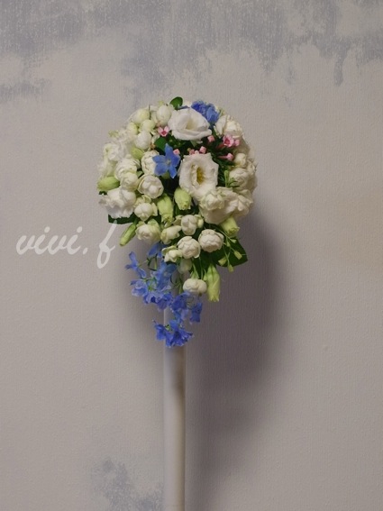 またまた台風か発生して、接近のおそれが 出ていますね こちらもティアドロップブーケです。 フリースタイルコースでの作品です 白の花々に、ブルーのデルフィニウムが 蝶々の様にひらひらと... 北九州 アレンジメント教室 北九州 プリザーブドフラワー教室 北九州市八幡西区 フラワーアレンジメントレッスン 北九州市八幡西区 プリザーブドフラワーレッスン