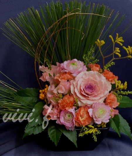 基本形のトライアンギュラーを応用してお正月花をアレンジメント! 松や枝もの、千両、葉牡丹...などなど、お正月花材で作製すると、いつもの基本形もお正月らしいアレンジメントに早変わりです(^ー^* )カルチャーコースさんのお正月作品です。 北九州 アレンジメント教室 北九州市 プリザーブドフラワー教室 北九州市八幡西区 フラワーアレンジメントレッスン 北九州市八幡西区 プリザーブドフラワーレッスン
