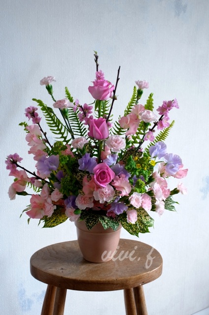 最近のブログでは季節感なく昨年末の作品をアップし続けていますが 2月の教室では、バレンタインの他に桃の節句をテーマに 作製していました。 ブーケタイプや、花器をテーマにしたアレンジ、基本形を応用... などなど、テーマはそれぞれに違います