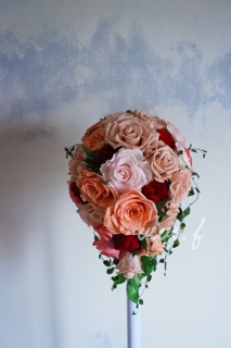 昨年より撮りだめていた「教室で作製された ブライダルブーケ」のアップです こちらは昨年秋にご結婚されたNさん作の ご自身用のブライダルブーケです。 ブーケの他に、着せ替え付きのブートニアや リストレット、ヘアーフラワー、両お父様への ブートニア、リングピローなどなど、たくさんの 花飾りを作製されました!! ブーケとコサージ類はNさんのイメージや ドレスのイメージを大切に花色選びをしました。 リングピローはイメージ写真をお手本に 思い出に残りますね vivi.f リース...http://vivi-f.com/...
