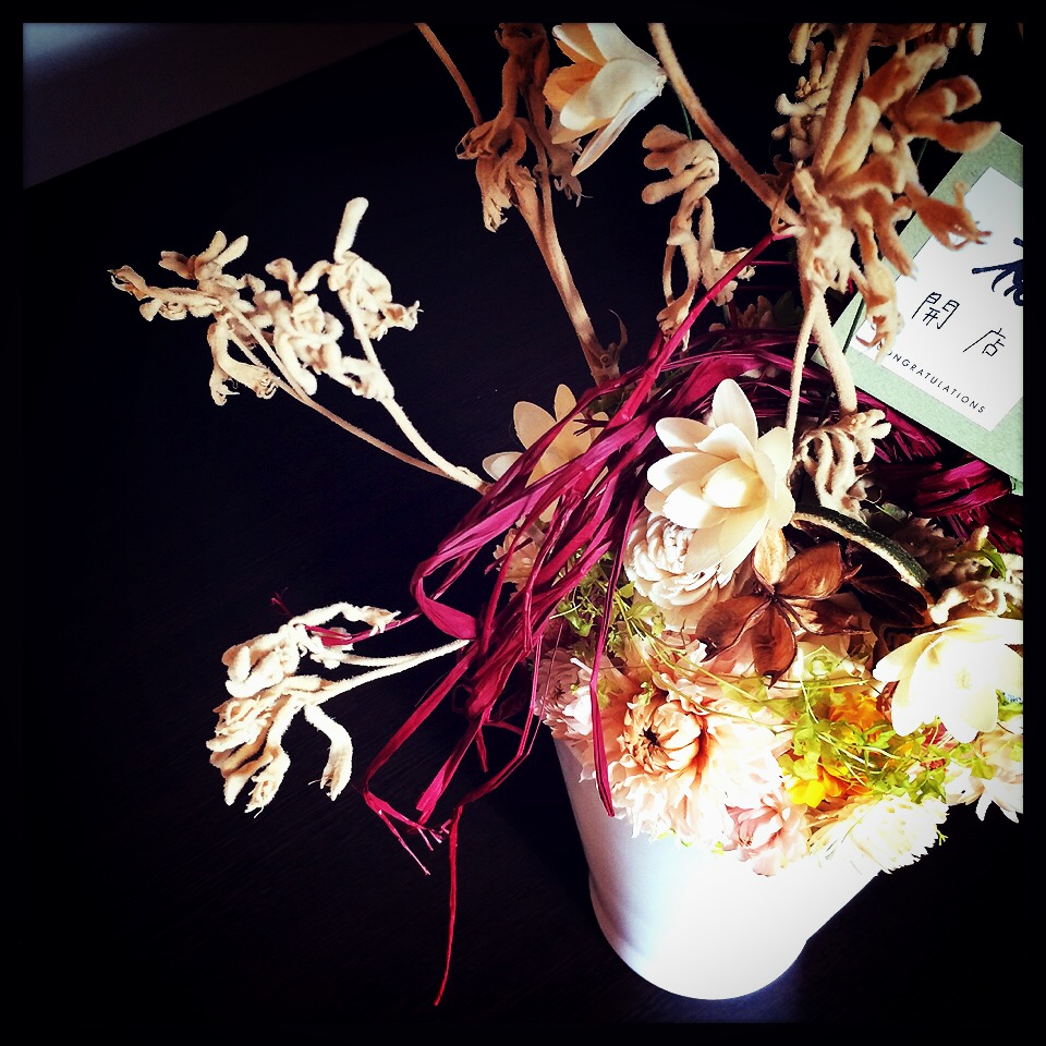 JUGEMテーマ:フラワースクール堺東駅より5分でフラワーレッスン。 FCURA(フクラ)です^^ありがたいことにpangeaさんでの初レッスンも残り1組さまとなりましたー♪楽しみです!さてさて、今日はご注文のお花ご紹介です★オーガニックや薬膳料理のお店だそうで自然・ナチュラルな感じFCURA流制作させて頂きました^^高さのあるアレンジメントなのでこれまた全体図の写真が微妙なんですが・・・^^;カンガルーポーという枝モノをアシンメトリーに使って・・・まぁ、シュッとした感じですww後ろにもたくさんお花はいってます★FC...