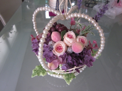JUGEMテーマ:フラワースクール フラワースクールの見本に作ってみました 淡いピンクとパープルの花材を主体にして落ち着いた雰囲気に。 アクセントに葡萄を入れて季節感を出してみました。 思わず食べてみたくなるアレンジメントです