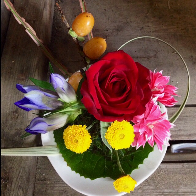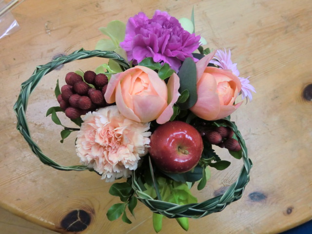 26日〜27日と勝山市の文化祭です「風民舎」レッスン生のみんなの作品もたくさん並びました!今回の「風民舎」のテーマ「十人十色」一つ一つの作品に作り手のコメント入りですぜひぜひごらんになってくださいね・・・・・本日26日1:00〜3:00教育会館にて「花時間」レッスンあります!!参加費 ¥200にて。「てのひらサイズの秋玉アレンジ」 お花の下はてのひらサイズの苔玉になってます先着30名さまとなっておりますぜひぜひご参加くださいお待ちしております