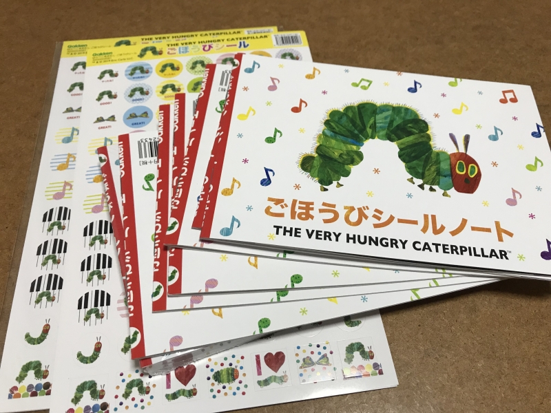 ★★★ ごほうびシール始めました ★★★ 娘もピアノの講師ですが、娘の教室にイベントがあり行って参りましたら、 とっても可愛い「ごほうびシールノート」が売られていました。 エリック・カールの絵本。 最近のご父兄は、叱りつけるより、上手く子育てできていると感じる事が多いです。 ですが、毎日の勉強には、目標があった方が楽しいものね。 早速、みんなに確認したら、 やりた〜い❣ とのこと。 どれだけのシールが増やせるか楽しみだわ...