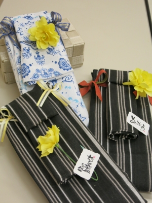 JUGEMテーマ:習い事・資格・講座 ゴールデンウィークが過ぎやっと普通の生活に戻ったところでしょうか? 今月のテーマは「父の日」 生徒様から、前に展示したワインボトルを2本ラッピングしたものをと リクエストがありましたので,空のワインボトルですがラッピングをしてみました。 日本手ぬぐいを使ったラッピング 薄葉紙を使ったラッピングの3種類 ペーパー・リボンは自由に選んでいただいたので少しずつ違った雰囲気に・・・・ ...
