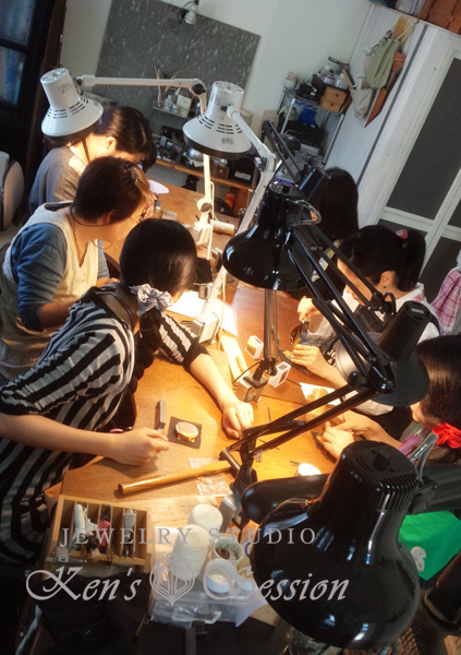 JUGEMテーマ:習い事・資格・講座 ジュエリー作りが楽しみながら学べるという事で、大変ご好評をいただいている彫金教室ですが、体験教室も行っております。 昨日はご友人をお誘いの上、沢山の生徒さんが横浜から座間工房にお越しいただきました。 カルチャー教室や公民館の講座などで、15〜16人に一斉に教えさせていただいたことはありますが、当工房の体験教室1クラスで6人は初です。 彫金がどれだけ楽しくて素敵なものか、味わっていただく為に講師も必死です笑 当然、作業の説明が優先なので適当な撮影になってしま...