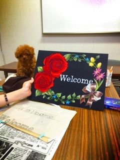 JUGEMテーマ:習い事・資格・講座 こんにちは、NAHOです。 月一回で何度か趣味コースに 通ってくださってた生徒さんの目標、 ウエルカムボードができあがりましたー。 ちょいとシックな感じで素敵でしょ。 ワンコに似合ってるでしょ! この子は生徒さんのワンコちゃん なんだけど、まだ小さくてお留守番が できないので、一緒に通って くれましたー。 めちゃかわいーの。癒される。 趣味コースはね。 私がデザイン作るんだけど、 彼女は次から本コースに編入することに なったので、これからはデザインも ...