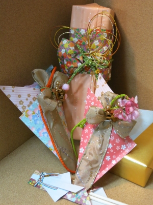 JUGEMテーマ:習い事・資格・講座 今月の歳時記ラッピング お正月らしく和風の物でラッピング 和紙や和紙の折り紙を使ってのラッピング 作品は小さいのですが、一つ一つに結構時間がかかり 折り紙で作る折り形まではできませんでした。 初めて水引を使ってのオーナメント アワビ結びにも挑戦してみましたが 時間ぎりぎりでしたので、結び方を組みひもで練習して 「家で試してみてください」と少し多めに水引をお渡ししました。 次回は 1月14日(火) 風呂敷 2月10日(火) バ...