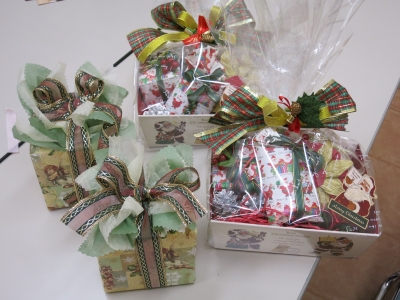 JUGEMテーマ:習い事・資格・講座 今月の歳時記ラッピングはクリスマス 一つはフランスの輸入ペーパーを使い もうひとつのラッピングOPP用紙を中が見えるラッピング 右側の中身も一つ一つラッピングして箱に入れています。 来月は、ふろしき・ぽち袋・水引などお正月に使えるラッピングを予定しています。