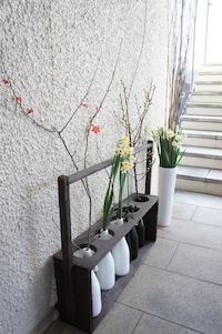 今年も残すところ後僅か。明日のアトリエレッスンで仕事納めとなります。 今日は、茅ケ崎熊澤酒造、天青さんへお正月の装飾へ伺いました。 松竹梅+南天、おおだれ(しだれ柳)のおめでたさ満載の門松風玄関飾り。 その他店内装飾もしてまいりました。 ちなみに、後方に見えるのは、クリスマスに納品した、岡本太郎風リース(笑)に水引きをつけてリメイク。 大物の納品が終わって、肩ははり、腰はバリバリの肉体疲労です。 後一日、仕事納めまで何事もなく過ごせる事を祈っています。