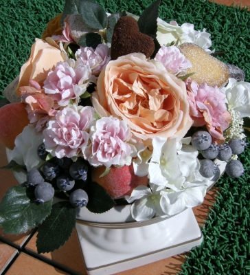 JUGEMテーマ:フラワーデザイン 今日のレッスンはクッキー&チョコアレンジtさんの作品です。薔薇に、ブルーベリークッキー、チョコも加えましたちょっと、日差しが暖かく感じられましたね。お疲れ様です