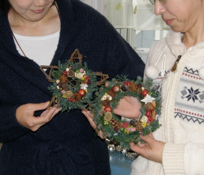 JUGEMテーマ:フラワーデザイン クリスマスリースのレッスンプリザのヒムロ杉にドライの実物、アートの実でアレンジ今年はみなさんに好きな実を入れていただいていますかわいく出来ました