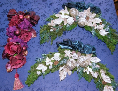 JUGEMテーマ:フラワーデザイン クリスマススワッグとガーランドスワッグはプリザのクジャク草にオーナメントやドライの実をアレンジリホーム中のブルーのおうちにピッタリかと・・・。幅広のリボンも光沢のある何とも言えないお色です。定番のガーランドは真っ赤と少しパープルを加えました。大人の色味ですねコットンと実物のリース松かさとアートフラワーとコットンなので長く楽しめます。みなさん、素敵に出来上がりました楽しいクリスマスを