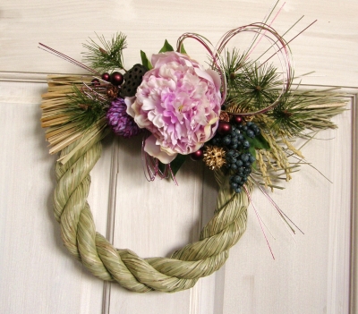 JUGEMテーマ:フラワーデザイン しめ縄飾りお正月の縁起物の牡丹でお飾りを作りました。お花を変えるとまた違った感じになりますね今年最後のレッスン今年一年、お疲れ様でした。また来年お待ちしています。毎年、最後につくっている車用お飾りです。最近は車に飾っているのを見かけませんが、うちでは一年間の事故がない感謝とまた一年無事にという思いで飾っています。