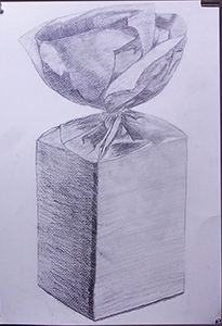 Mさんのデッサンです。 包装紙に包まれた箱を描きました。ねじれた部分が良く描けています。 まだ3枚目ですが、丁寧によく観察できていると思います。 次週は仕上げをして、次の課題に挑戦です。 JUGEMテーマ:通信教育 通信講座 絵画 絵 習い事 絵画教室