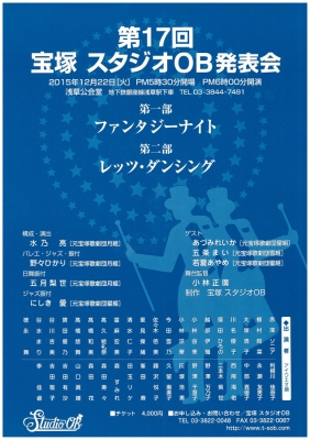 JUGEMテーマ:日本舞踊 第17回 宝塚スタジオOB発表会 【日 時】2015年12月22日(火)17:30開場/18:00開演 【場 所】台東区立浅草公会堂 東京都台東区浅草1-38-6 TEL 03-3844-7491 FAX 03-3847-0169