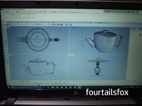 JUGEMテーマ:ジュエリーCAD 曲線を描いて、筒状にし接合部を処理。 図形の回転など基本的なことと、画面の切り替えで見たい方向、部分をうまく使うということもわかってきました。 さすがにここまで手数が増えてくると、3Dマウスが本領発揮。 デバイスとしては、お値段もそこそこですがこれがあると、とても便利だということが作業のレベルがあがると理解できる感じです。 3D CADで、ティーポットを描き、フラミンゴ(レンダリング ソフト)で質感をつける。 文字はフォトショで貼り付けるのを変形してみました...