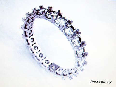 JUGEMテーマ:ジュエリーCAD と、いうわけで・・・。 水曜日は、22時帰宅のジュエリーCADのスクールです。(でした) エタニティ―リング なんてものを描いたわけですが・・・。 これが慣れると10分くらいでちょちょいと描けるわけで。 いまなら、5分もあれば・・・。 ダイヤの数は20個、3mmです。 爪が4本タイプです。(爪留め前の画像) ダイヤモンドは、1mmのCADデータがあるのでそれを拡大して3mmに。 先生は、話す速度で入力していくので「あ〜。」な感じw 自分でやると、「え〜と・・・。」...