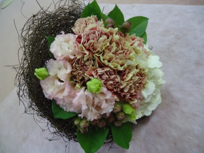JUGEMテーマ:お花 お花のレッスン 生花アレンジ ストローパインの中にスパイラルブーケ Nさんはブーケはたくさん作られてるので バランスよく素敵に出来ました