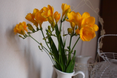 JUGEMテーマ:お花 ここ数日 暑い〜 冬は好きだけど この暑いのは嫌い 冬ごもりならぬ私は夏ごもりだ! 早朝と夕方からの行動になる・・・ 紫外線きつくて たまらない 春になると黄色いフリージアがよく売られていて・・・ 玄関に飾ってみた 朝陽を浴びてたくさんあったつぼみも咲き出した♡ フリージア 甘くておいしい〜香り! 柔らかい甘さの香りで好き♡